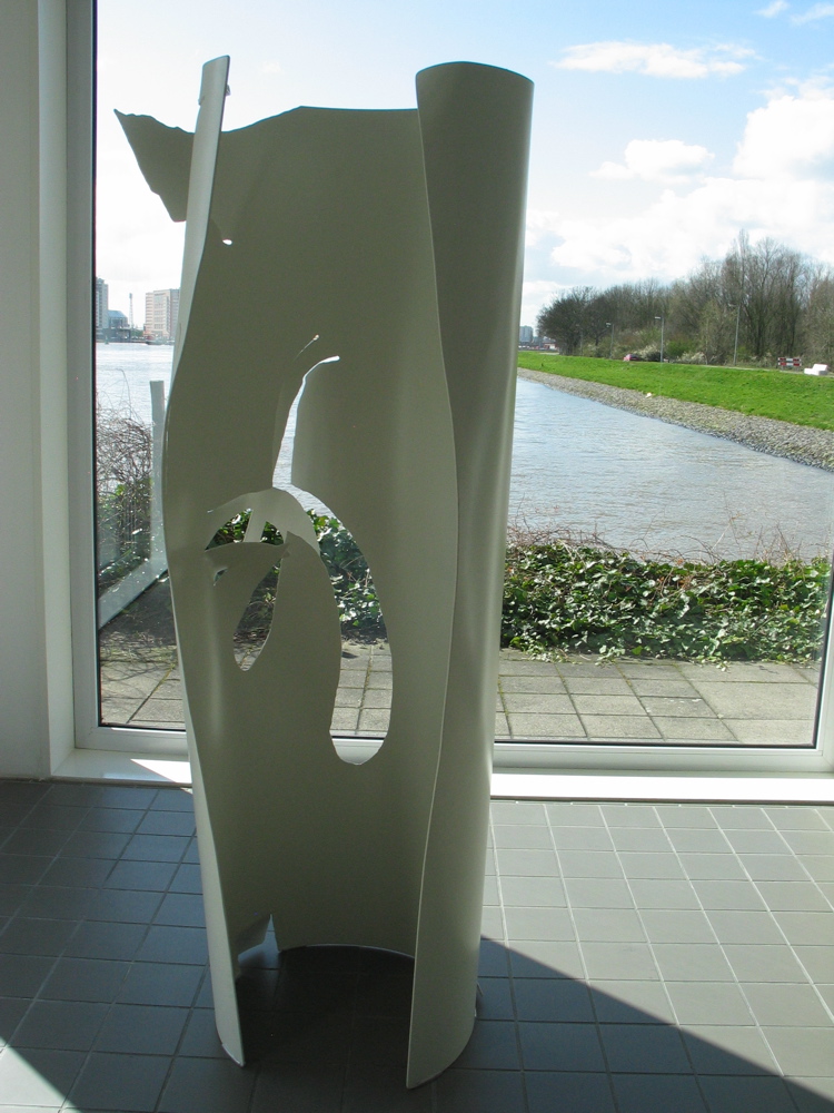 Previous ImageNext Image beeldinge incorporare 2007 4mm.plaatstaal/rondgebogen/uitgesneden/gelast/gepoedercoat(wit) verzameling: de Bruin -Heijn.